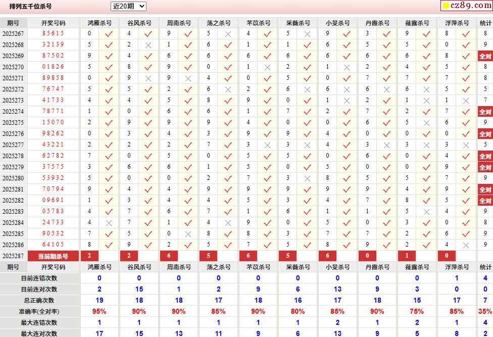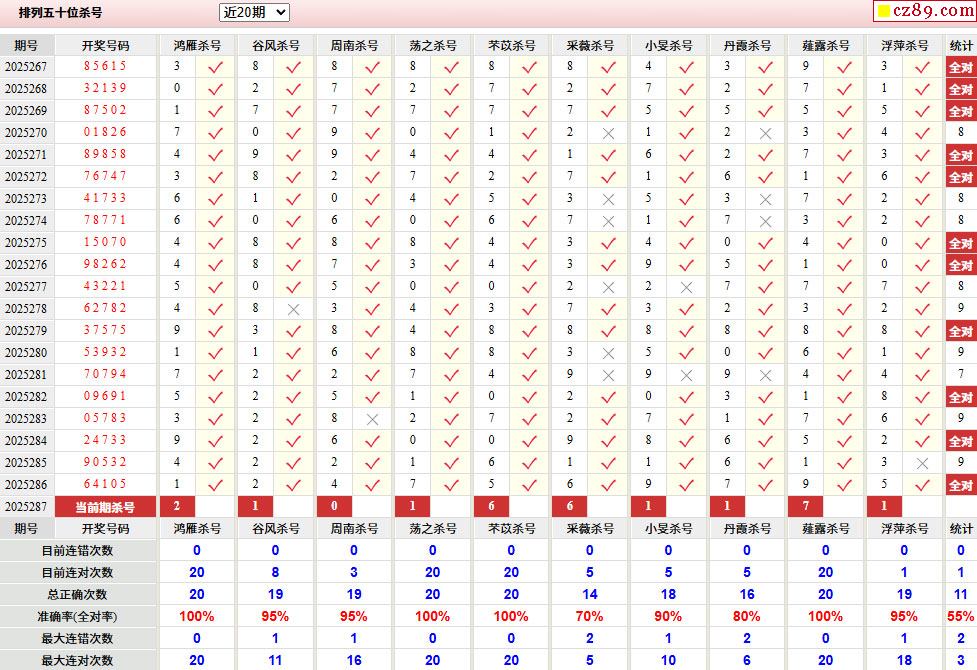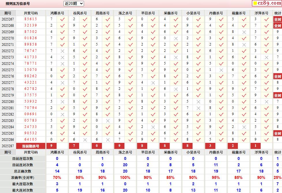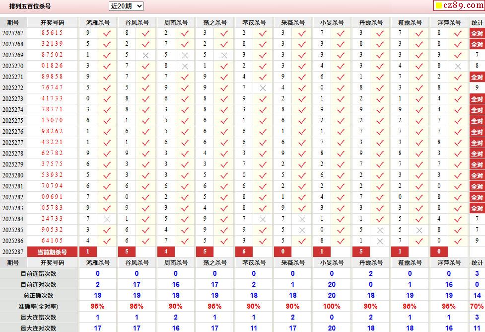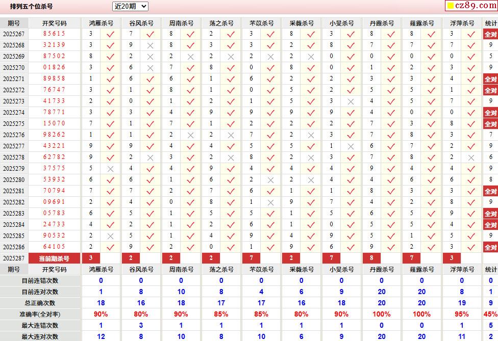 287期彩票专家体彩P5杀号推荐图表