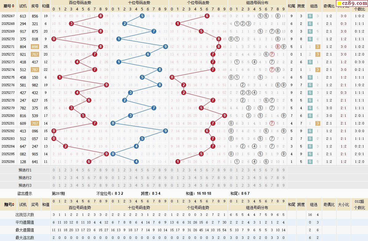 首页 > 排列3预测 > 287期体彩排列3近期历史号码图表